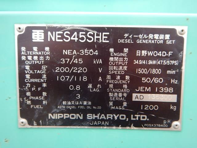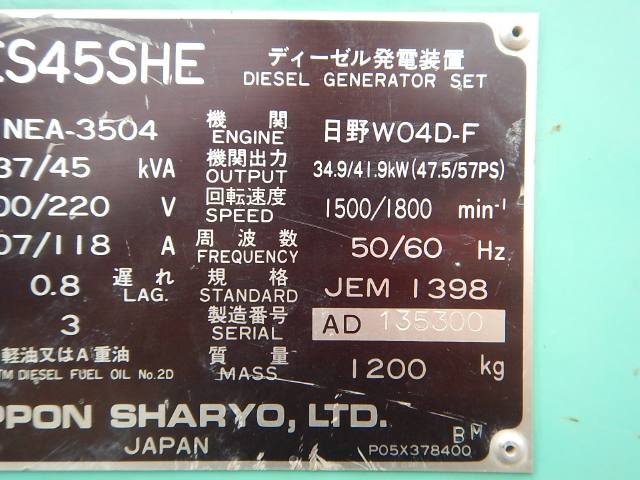 E/G Model HINO W04D E/G Serial No Hour 5,718