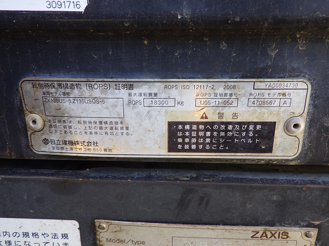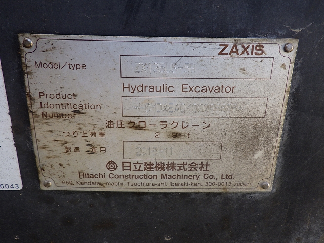 | Model | ZX135US-5B | Serial Number | HCMDAEA0K00096596 |